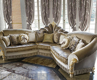Угловой диван Madame Royale выполнен в классическом стиле с помощью консультаций лучших итальянских архитекторов. Диван выполнен в окрасе под губку в бежевом цвете и специальной отделке под золото. Строгий, но приятный дизайн в классическом стиле, где присутствует утончённость вкуса, который отличает эту мебель и придаёт ей элегантность. Диван сделан из высококачественного массива дерева и украшен золотой фольгой, так же украшает диван продуманная с особым вниманием изящная резьба по дереву ручной работы. Обивка выполнена из ткани класса Lusso. Итальянский диван Madame Royale наполнит ваш дом изысканностью, роскошью и уютом.
