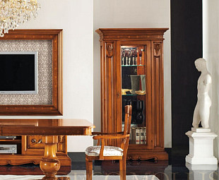 Классическая витрина, выполненная из массива ценных пород дерева в цвете вишня. Роскошная антикварная мебель, выполненная в чарующем дизайне старины прошлых веков. Строгие прямые формы мебели украшает элегантная лепка из дерева. Витрина изготавливалась по специальным технологиям обработки дерева так, что бы присутствовало ощущение старины. Роскошная витрина не оставит равнодушным любителей классической мебели.