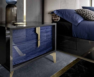 Шпон американской вишни, детали из шпона корня вяза, патина золото или серебро, лак.