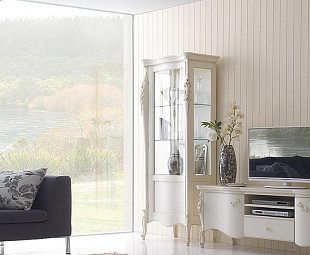 Витрина для посуды однодверная правая Venere - элегантная модель, в которой внешняя легкость сочетается с подлинной роскошью. У нее трехстороннее остекление, внутри имеются две стеклянные полки. Верхняя часть витрины отделана карнизом. Низ выполнен в виде волнистых линий.