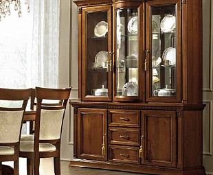 Витрина для посуды трехстворчатая Treviso производится с деревянной базой и с ящиками.