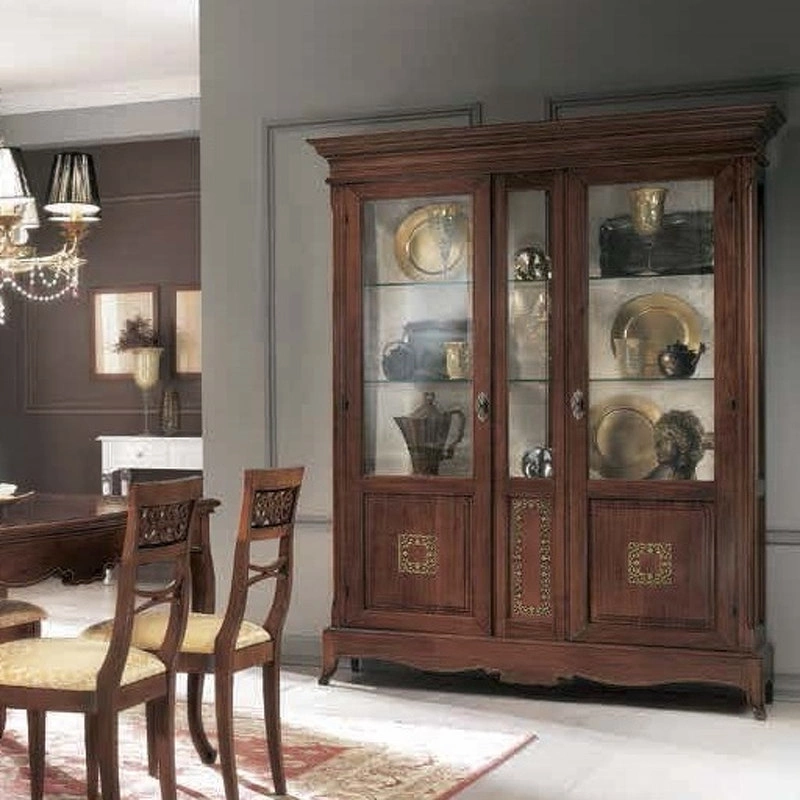 Витрина в классическом стиле с изогнутыми ножками. Имеет две распашные стеклянные дверцы. Внутри находятся стеклянные полки. Резные детали подчеркивают оригинальность этой модели.