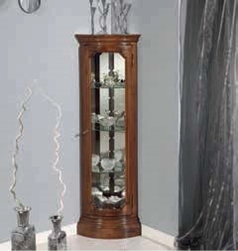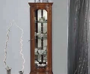 Угловой шкаф в классическом стиле. Имеет 1 стеклянную дверцу. Внутри есть стеклянные полки.