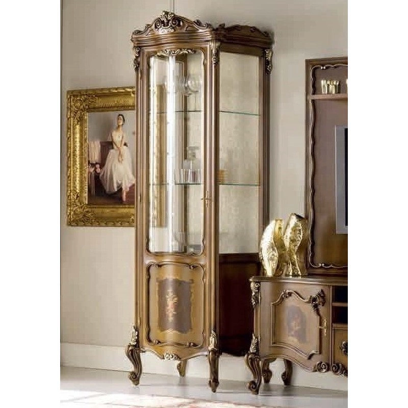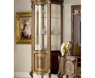 Витрина в классическом стиле с изогнутыми ножками. Распашная стеклянная дверца (открывается влево). Внутри расположены стеклянные полки. Резные детали подчеркивают оригинальность этой модели.