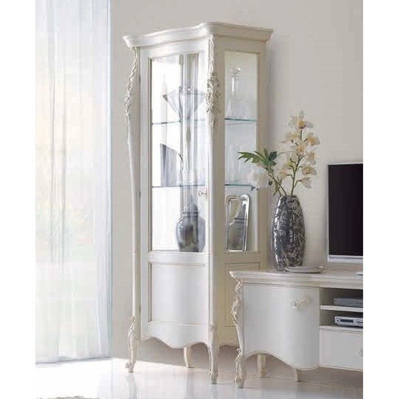Витрина в классическом стиле с изогнутыми ножками. Распашная стеклянная дверца (открывается влево). Внутри расположены стеклянные полки. Резные детали подчеркивают оригинальность этой модели.