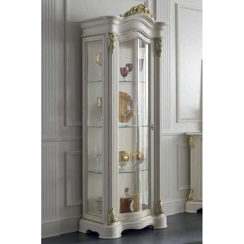 Витрина в классическом стиле. Имеет распашную стеклянную дверцу (открывается влево). Внутри имеются стеклянные полки. Резные детали подчеркивают оригинальность этой модели.