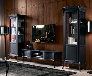 Витрина эксклюзивной коллекции Valpolicella выполнена с одной стеклянной дверкой. С целью хранения столовых предметов и других стильных аксессуаров внутри изделие оснащено стеклянными полочками. Витрина изготовлена из высококачественного натурального массива дерева. Для отделки используется матовый шелковистый лак. Данная модель витрины производится с резными изогнутыми ножками. Вверху на углах есть декор в виде округлых резных форм.