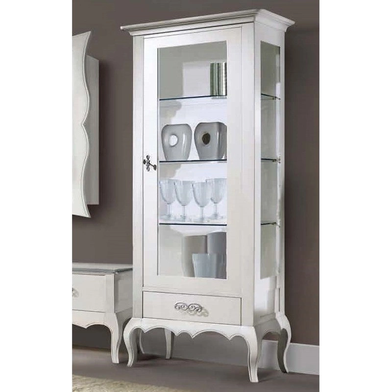 Витрина в классическом стиле с изогнутыми ножками. Распашная стеклянная дверца (открывается вправо). Стеклянные полки внутри.