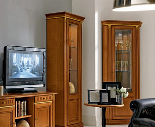 Удобная, вместительная итальянская витрина с остекленной одной дверью отлично вписывается к тумбе под тв дополняя гостиную уютом и красотой. Итальянское качество работы не оставит вас равнодушным к этой части интерьера гостиной