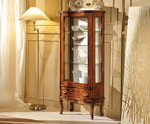 Витрина в гостиную Classic Agostina. Мебель Премиум класса, изготовлена из массива тюльпанового дерева, в отделке натуральным шпоном, имеет одну дверь и выдвижной ящик. Изящная, легкая и вместительная. Изготавливается в трех вариантах по высоте. Выберите подходящую для Вас. Высокая витрина вместит больше красивых предметов, а низкая позволит повесить на стену над ней прекрасную картину.