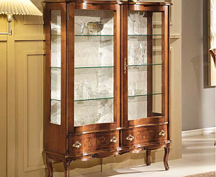Витрина в гостиную для посуды Classic Agostina выполнена в стиле легкой классики из массива дерева лириодендрон, в отделке натуральным шпоном лучшими итальянскими мастерами. Имеет две дверцы и два выдвижных ящика. Изящная, легкая и вместительная.