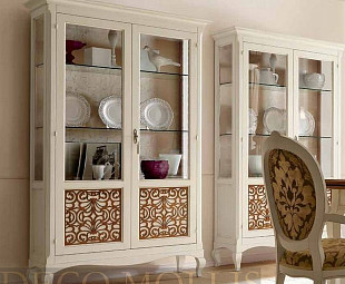 Витрина в гостиную из массива Capri Villanova – это благородство без пафоса, простота без строгости. Классическая модель с элементами прованса украсит интерьер дома, хозяин которого не приемлет полумер в вопросах качества и комфорта. Лаконичные дверки украшены роскошной резной накладкой, перекликающейся с цветочными тканевыми узорами на мягкой мебели и стульях этой коллекции. Стеклянные полочки и верхняя часть дверей добавляют прозрачности и легкости в пространство комнаты и позволяют по достоинству оценить расположенную композицию из чайной посуды.