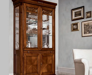 Итальянская витрина Tiffany выполнена в классическом стиле. Мебель выполнена в теплых тонах ореха. Сделана мебель из массива в отделке из шпона ценных пород дерева. Украшают мебель элегантные резные орнаменты в виде цветочных узоров. Витрина Tiffany не оставит равнодушным любителей классической мебели, и наполнит интерьер дома спокойствием, теплом и уютом.