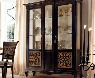 Витрина в гостиную мокко Capri Villanova выдержана в классическом стиле в сложном шоколадно-вишневом оттенке c патинированием. Две двери имеют в верхней части стеклянное оформление, в нижней украшены декоративной ажурной резьбой. Боковины и полочки из стекла «облегчают» силуэт модели и позволяют любоваться выставленной внутри коллекцией или сервизом чайной и столовой посуды. Выполненный из натуральной древесины черешни и бука буфет очаровывает своей гармоничностью
