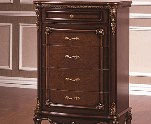 Высокий комод цвета орех Донателла. Элегантный и утонченный комод Донателла от китайских производителей является не только частью интерьера, но и современным произведением искусства в области мебели. Роскошные формы, плавные линии комод Донателла украшает стильная резьба ручной работы. Комод выполнен в цвете орех, что придает помещению гармоничность и дополнительное пространство. Сделан комод Донателла в классическом стиле из высококачественного МДФ и дополнен лакированным ДСП. Комод Донателла наполнит ваш дом теплом, атмосферой роскоши и уюта.