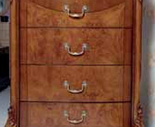 Высокий комод Маркиза. Классический высокий комод сделан из мдф с экологичным полимерным покрытием, украшают комод декоративные элементы. Комод имеет пять выдвижных ящиков для хранения. Комод выполнен в цвете орех. Роскошный и стильный комод дополнит интерьер вашей спальни.