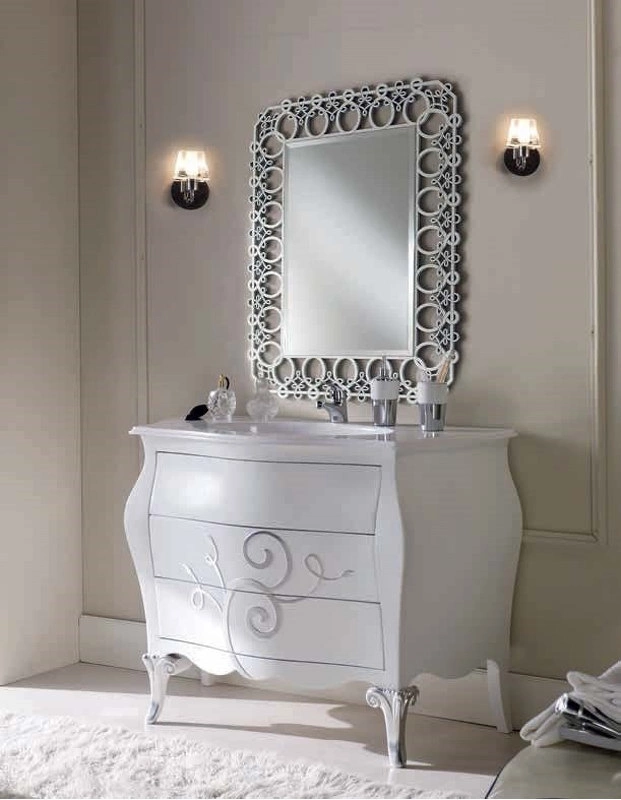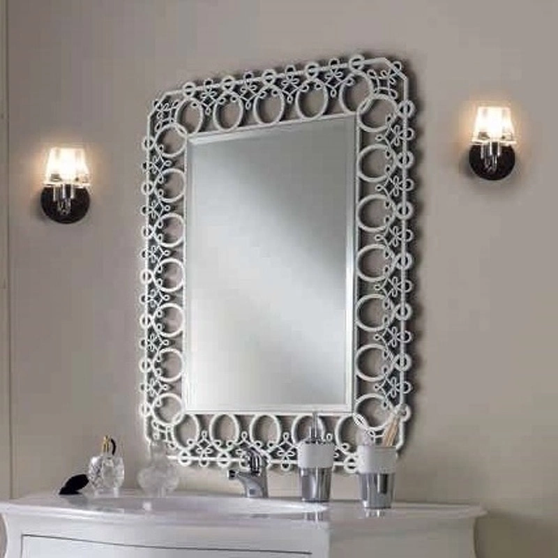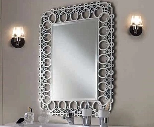 Зеркало прямоугольной формы в искусно украшенной раме станет великолепным акцентом для оформления внутреннего пространства.