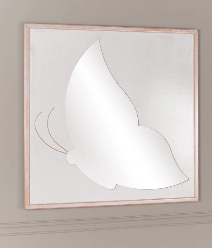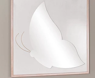 Зеркало, оформленное в форме бабочки, создано из массива дерева тюльпана, которое импортируется из Южной Америки. Финишная отделка соответствует изображению. Зеркальная часть выполнена в виде бабочки.