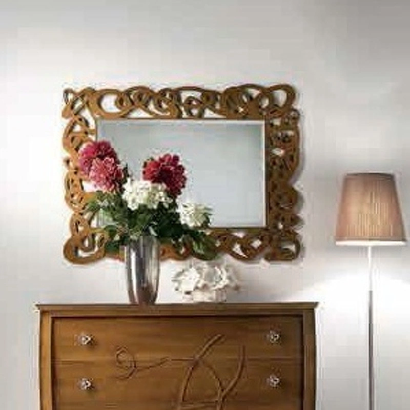 Прямоугольное зеркало со скульптурной рамой дополняет интерьер.