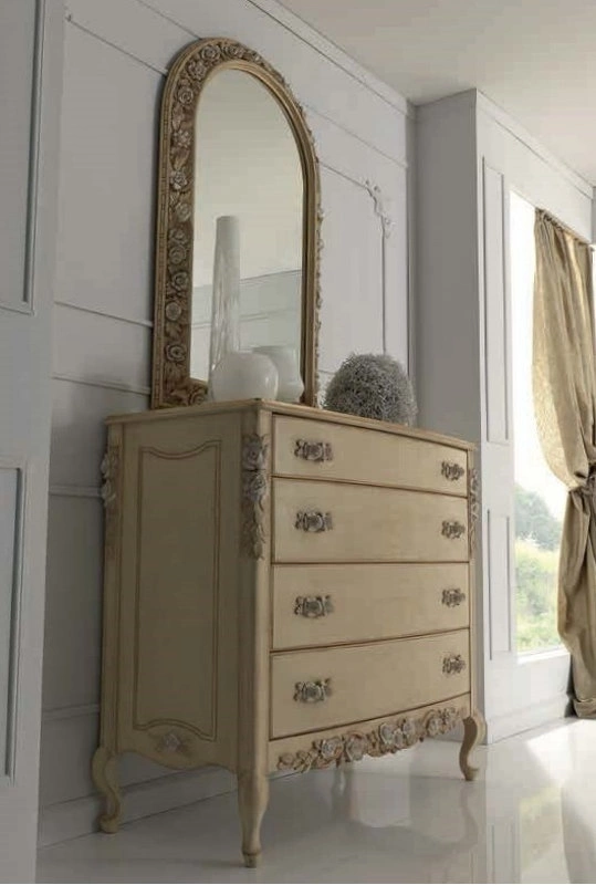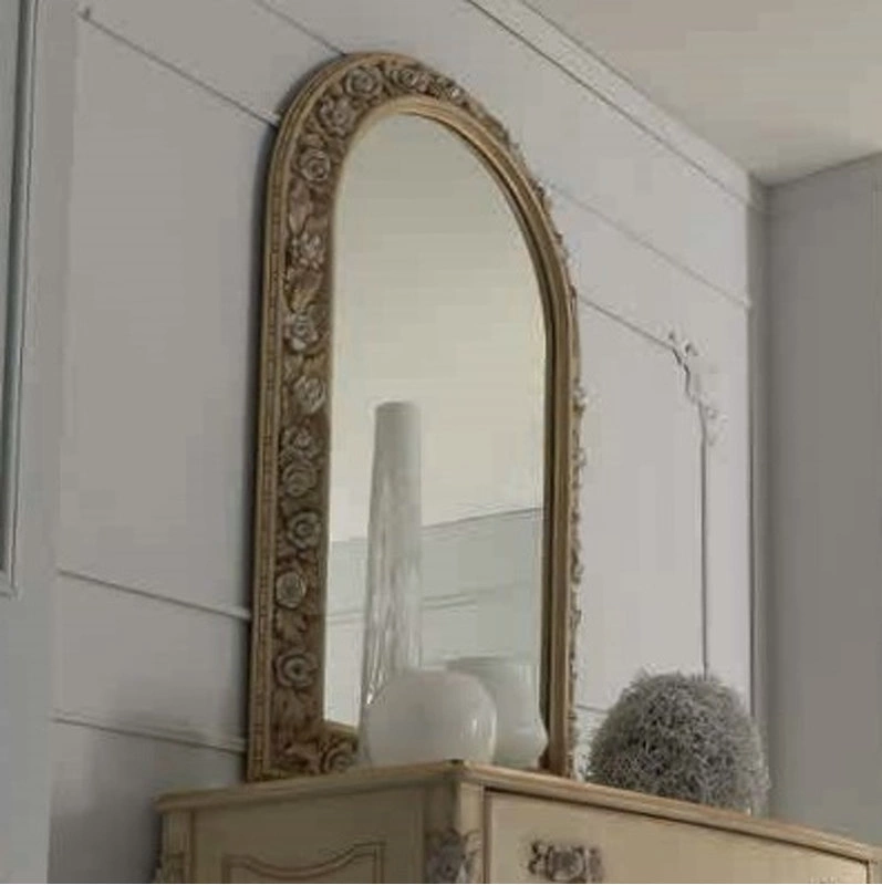 Зеркало помещено в резную раму и выполнена в классическом стиле.