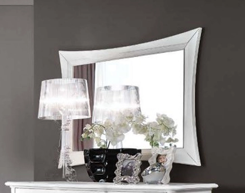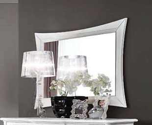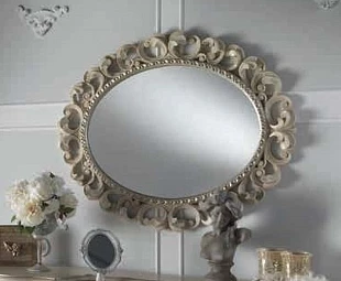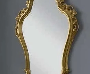 Прямоугольное зеркало с плавными изгибами и массивной рамой.