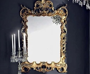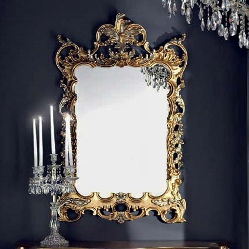Зеркало прямоугольной формы, обрамленное изысканной резьбой, оформлено в традиционном стиле.