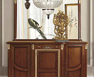 Зеркало из массива Capri фабрики San Michele. Зеркало выполнено в классическом стиле, лучшими итальянскими мастерами и дизайнерами. Зеркало сделано из высококачественного массива и шпона вишни в цвете вишня. Украшено зеркало элементами из сусального золота.