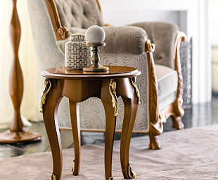 Овальный журнальный столик в гостиную идеально впишется в ваш интерьер. Имеет четыре изящные ножки с золотой отделкой в виде узоров.